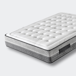 Un colchón con sistema muelle ensacado, adaptable y transpirable, conseguido a través de nuestra carcasa ensacada multizonas, en la que se proporciona una independencia de lechos. Además de ofrecer dos caras con tejido strech y filamentos de lurex y acolchado con visco carbono, donde se consigue la adaptabilidad al descanso.